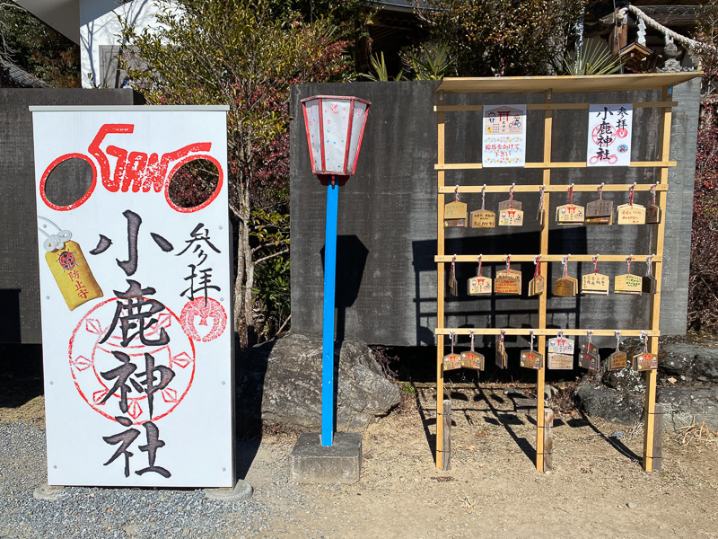 そんな小鹿神社は、日本全国からバイク乗りが参拝する「バイク神社」としてライダー達には知られている。きっかけは2006年(平成18年)町おこし事業の一環として、小鹿野町でオートバイによるまちおこし事業が開始。ツーリングのため秩父地方を訪れるライダーを迎える様々な施策を企画する中で、神鹿が東征中の日本武尊(ヤマトタケル)を導いたとの神話が伝わる小鹿神社に着目。鹿の二本の角をバイクのハンドルに見立て、ライダーの無事とバイクの交通安全を祈願する神社として新たな一歩を踏み出したのだという。