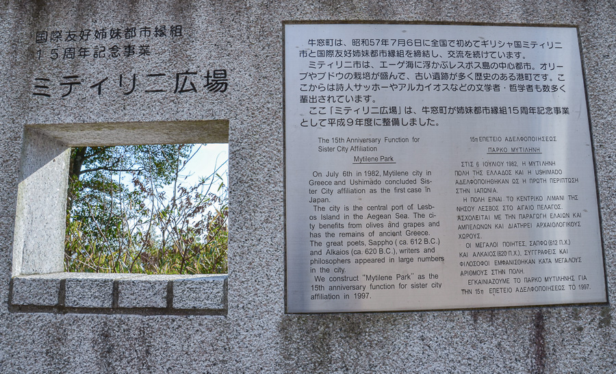 1997年(平成9)には、両市び友好姉妹都市縁組の締結15周年を記念して、牛窓町の港からオリーブ園に繋がる牛窓オリーブロードの一角の海を見下ろす平地に「ミティリニ広場」と呼ばれる展望公園が整備された。