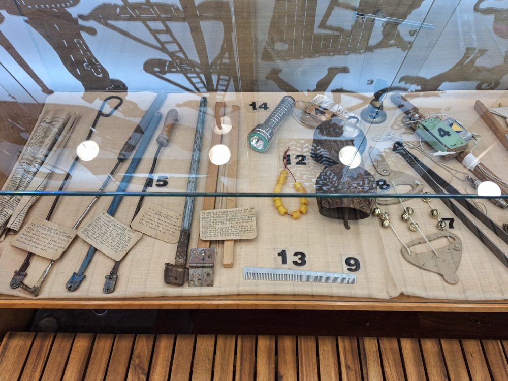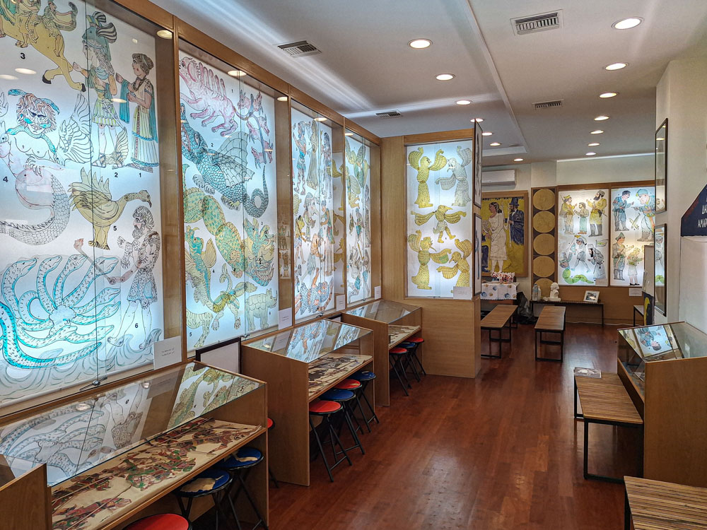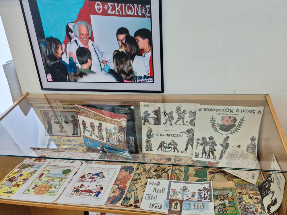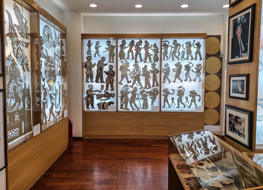 エフゲニオスとソティリス・スパサリスのコレクションからなる豊かな博物館の展示品には、影絵劇の人形や小道具、影絵人形を制作するための器具や材料、公演で使用された楽器、そして影絵劇に関する書籍や公演ポスターまで多岐に渡っている。